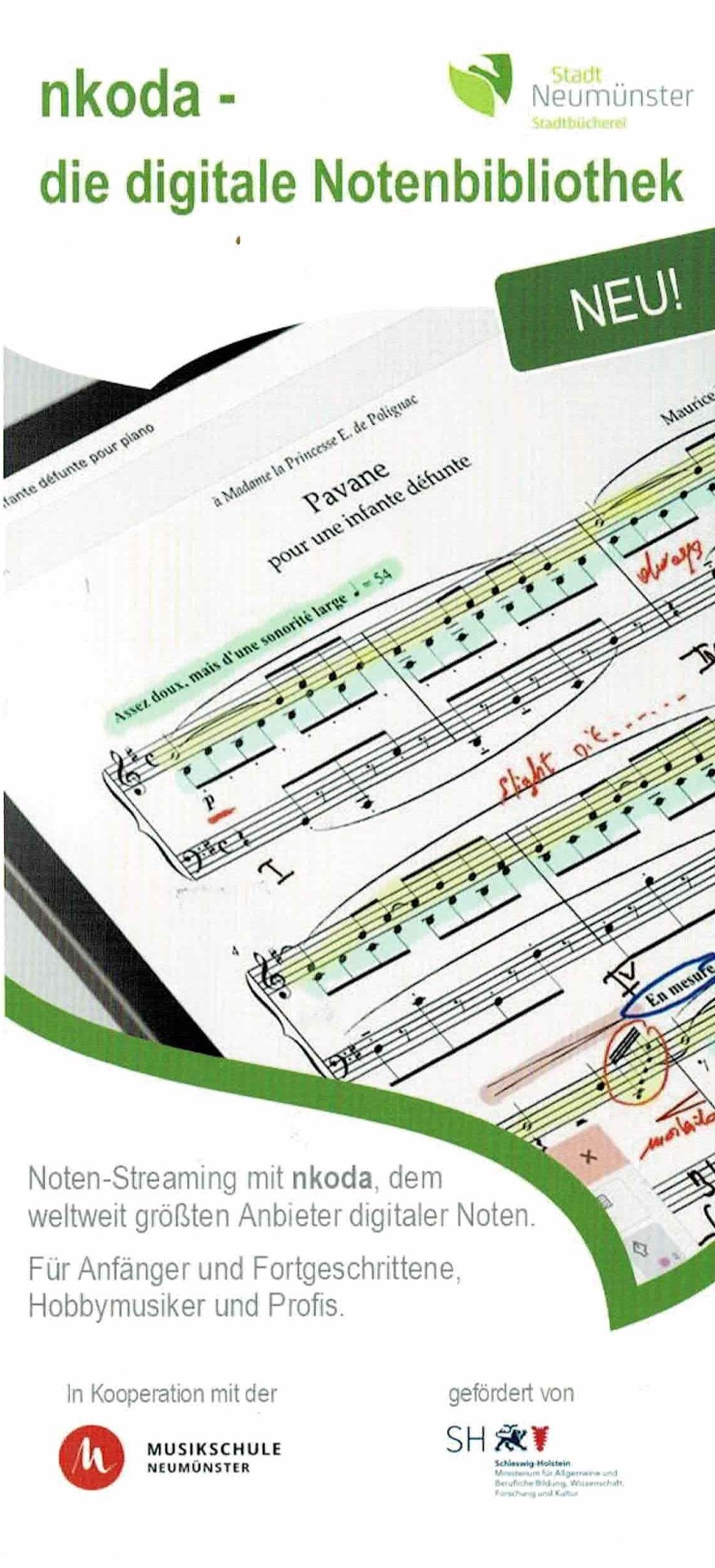 Dank einem Projekt der Stadtbücherei Neumünster haben auch unsere Leser kostenlosen Zugang zu digitalen Noten mit den Apps von nkoda, dem weltweit größten Anbieter von Noten für Anfänger, Fortgeschrittene, Hobbymusiker und Profis. Mittels Bibliotheksausweis kann auf das komplette nkoda-Angebot …